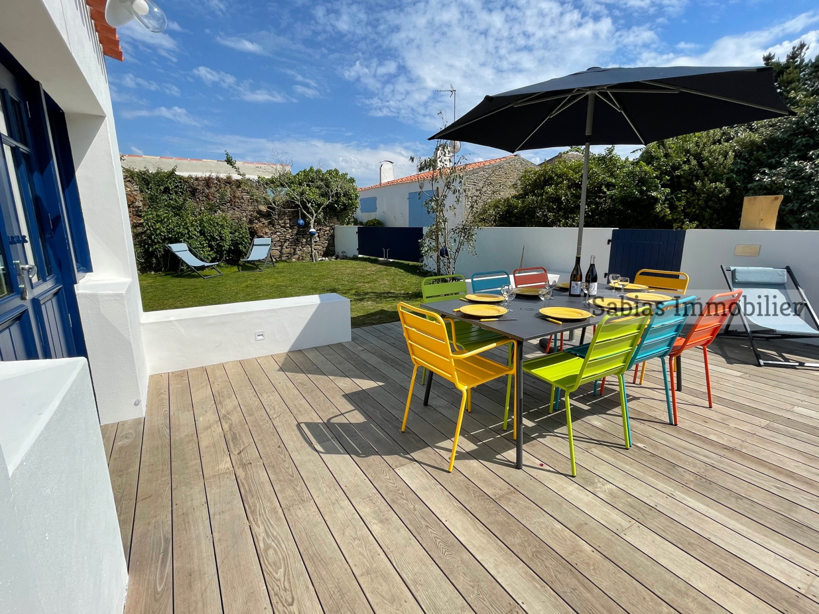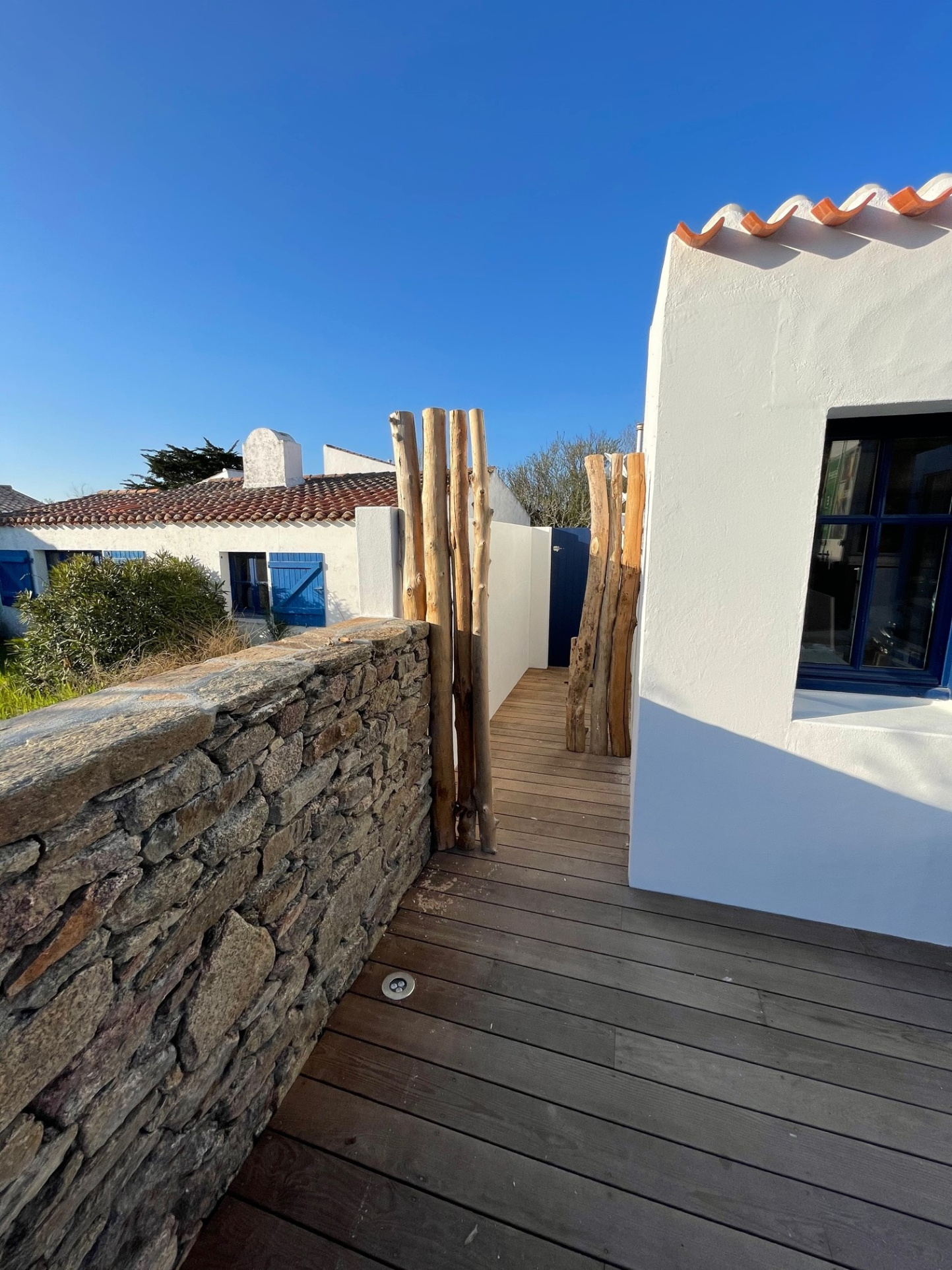 Située au calme à deux pas de la plage des Vieilles accessible à pied, une maison d'habitation pour 6 personnes comprenant un salon/cuisine, une chambre (un lit de 140), une mezzanine, une salle d'eau, WC, dépendance avec 2 chambres, une salle d'eau/wc, terrasse et jardin de plus de 140 m².
