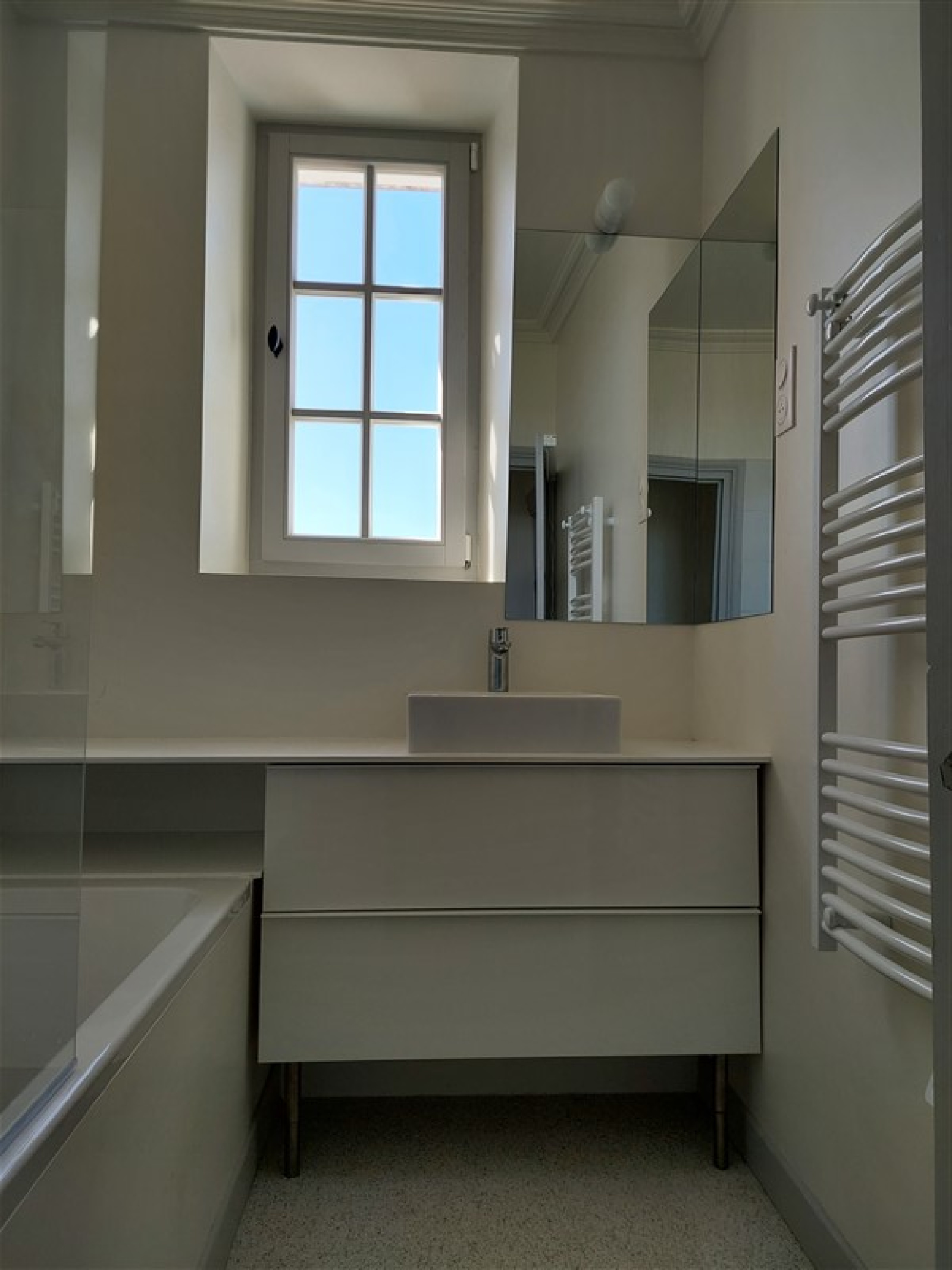Garage ; terrasse/cour d'environ 100 m².
