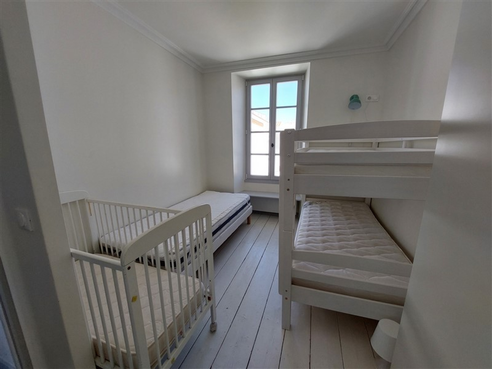 Chambre 3 : deux lits de 90 superposés + 1 lit de 80 + un lit bébé,