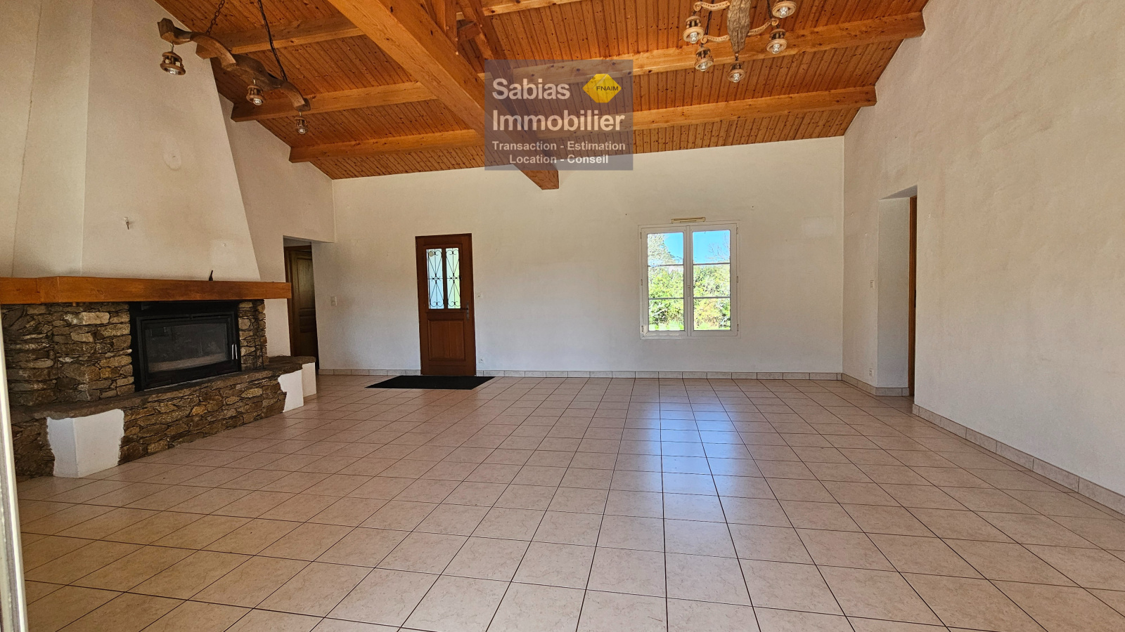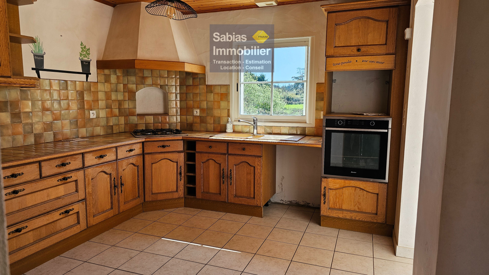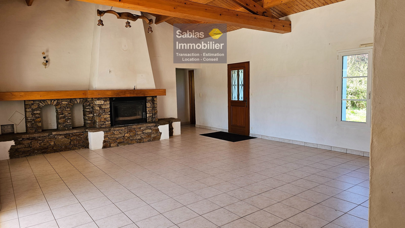Elle se compose d’un salon/salle à manger, cuisine, trois chambres, salle d’eau, WC, buanderie, deux garages, cave et patio.