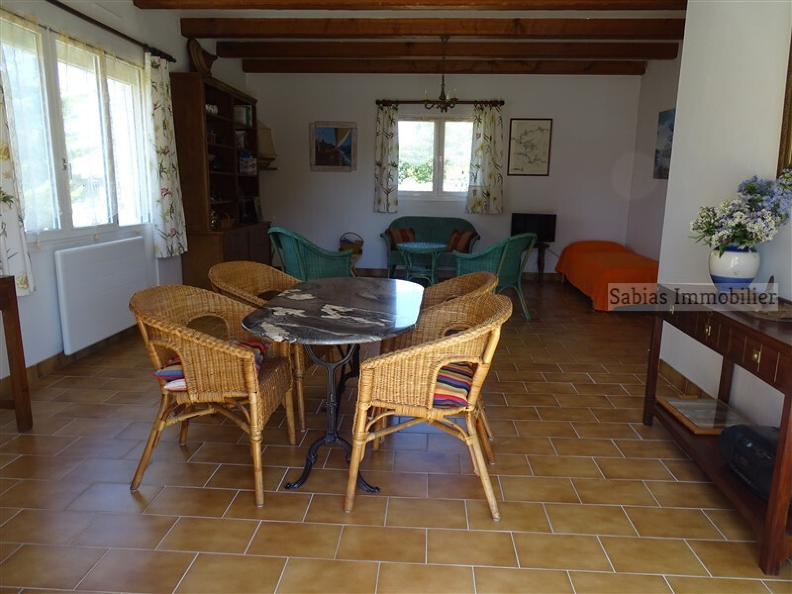 - Maison d’habitation : entrée, salon/salle à manger, cuisine, arrière-cuisine, deux chambres, couloir, buanderie, salle d’eau, WC, abri de jardin ;