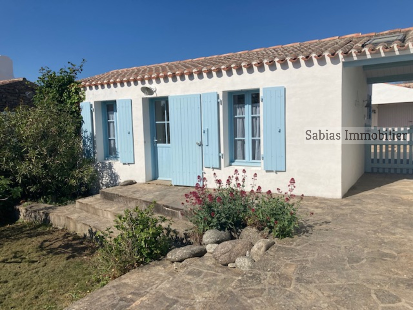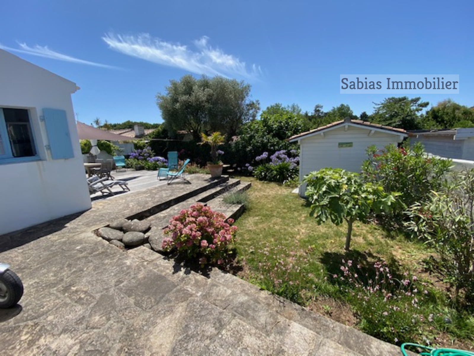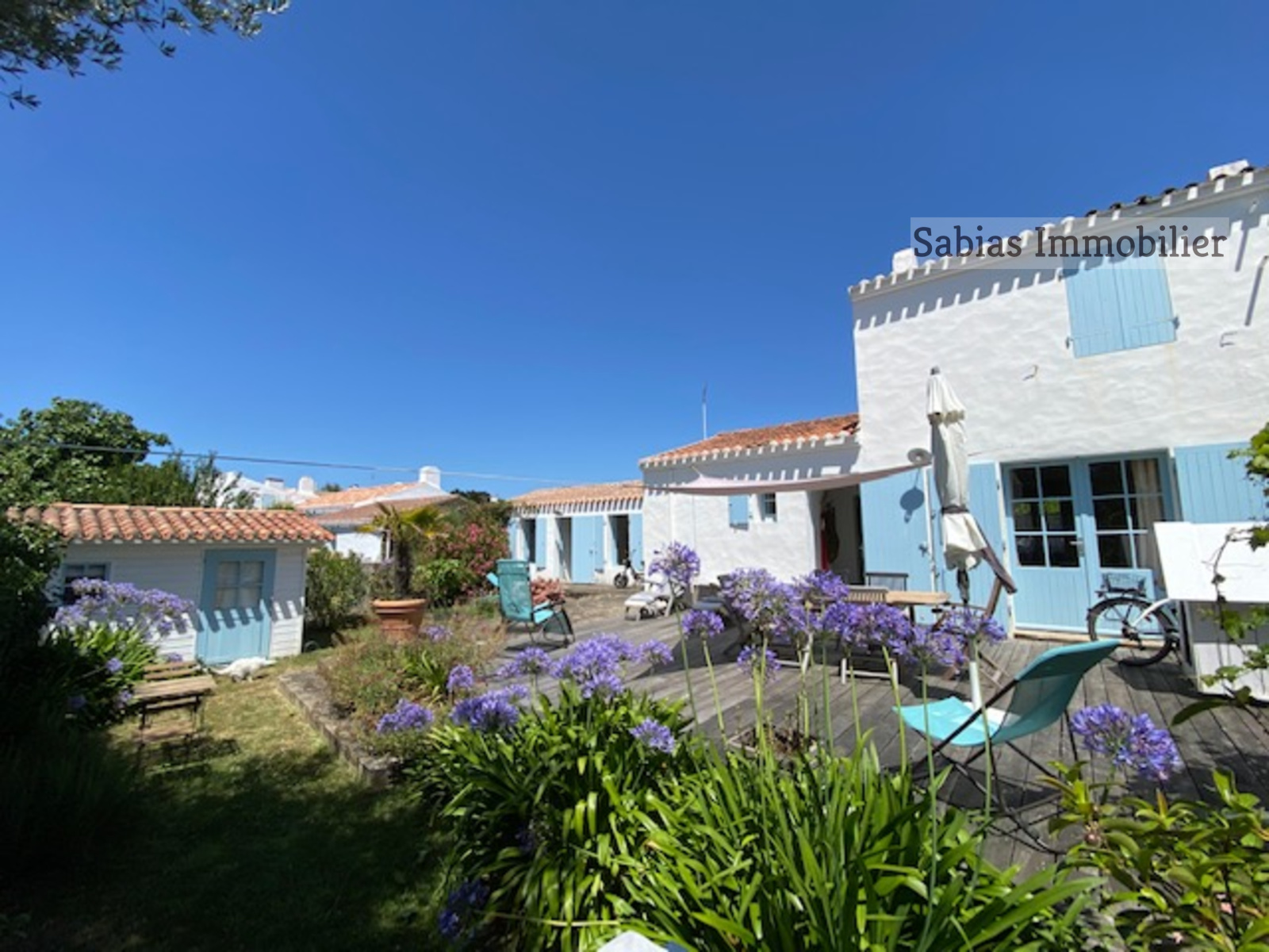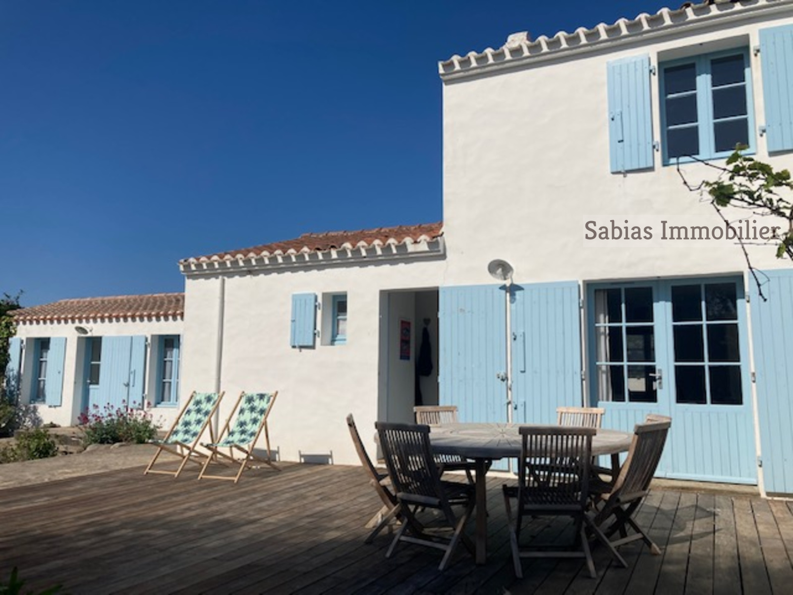 Le jardin verdoyant et sa grande terrasse ensoleillée viendront assurer le charme de cette maison typique de l’Ile d’Yeu.