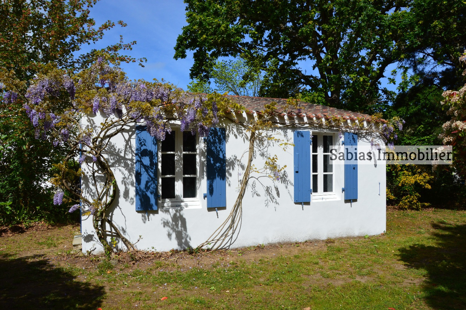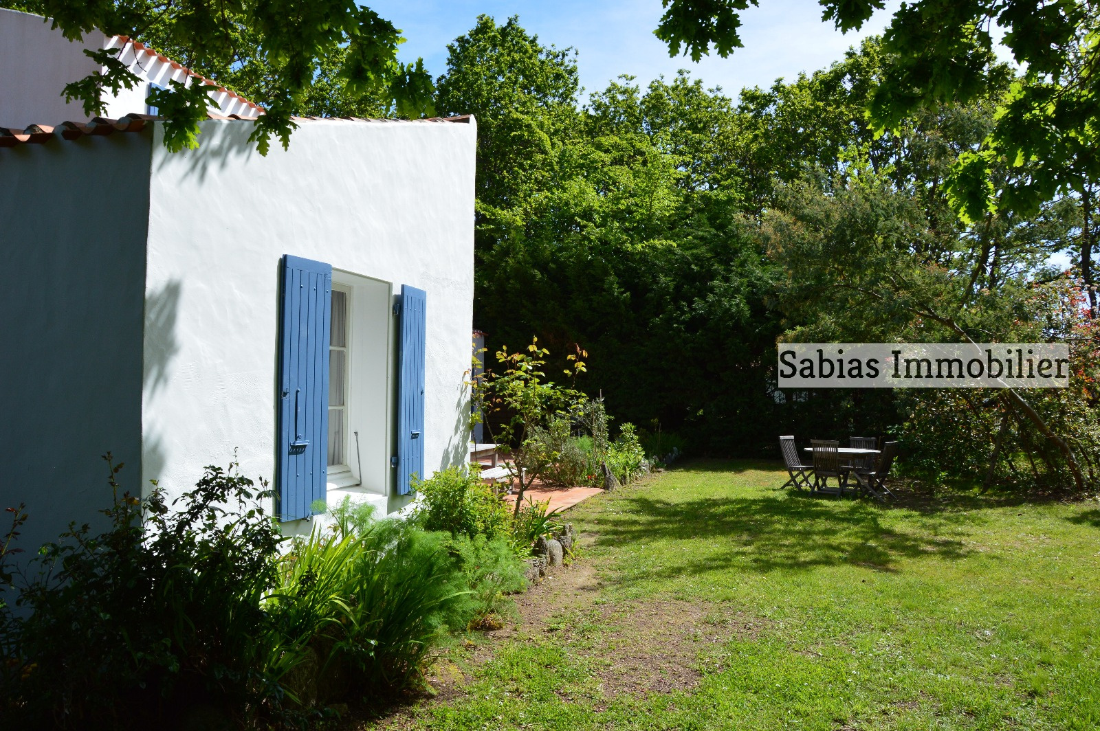 - Terrasse, garage indépendant et terrain autour.