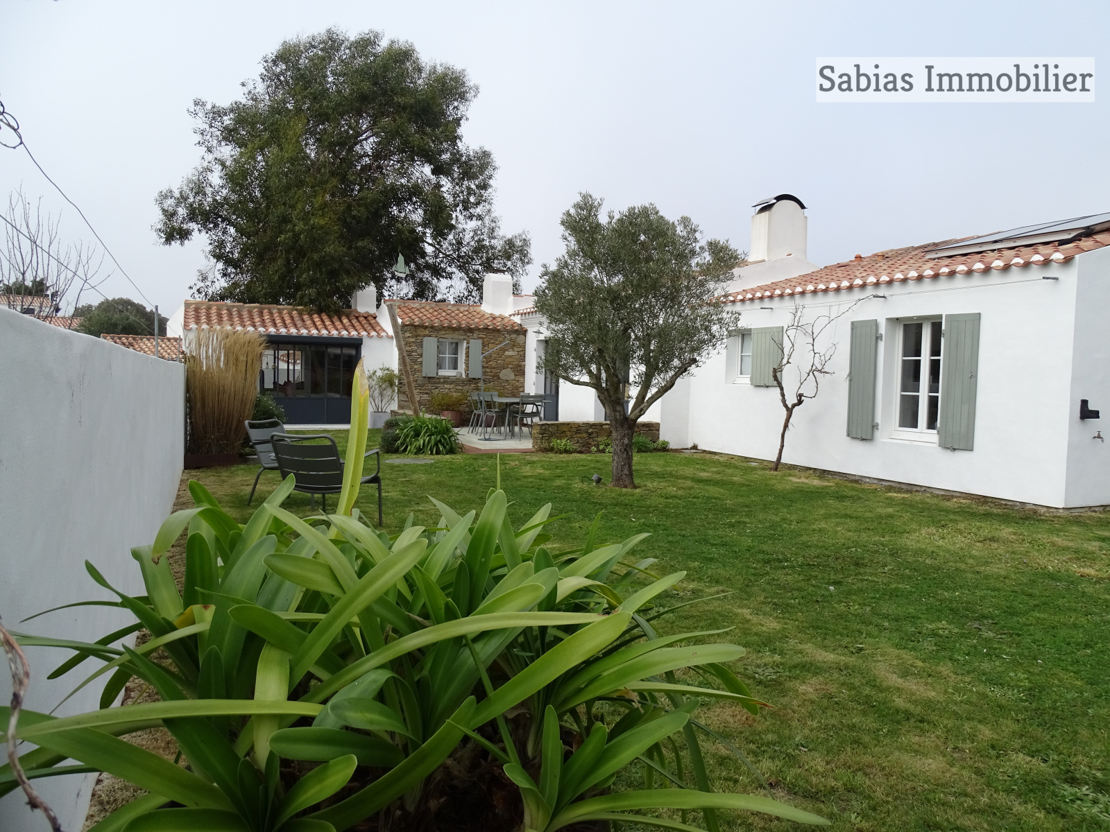 Un garage, terrasses et jardins.