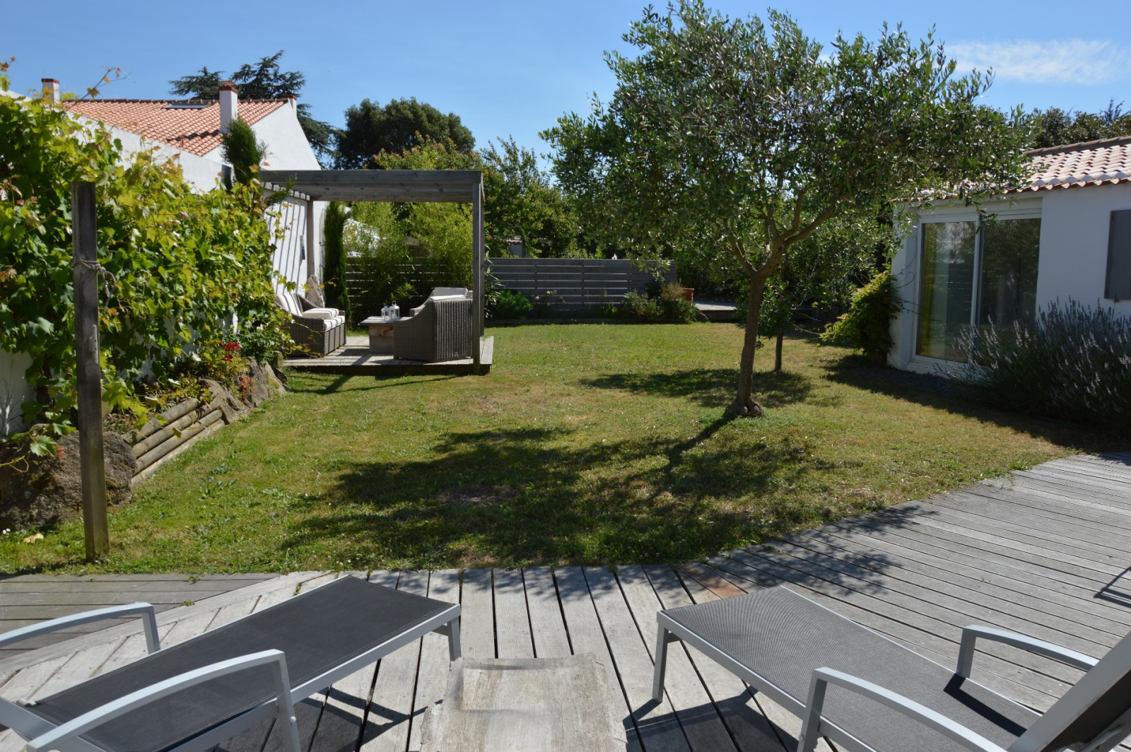 Atelier, terrasse, piscine hors sol (possibilité de la supprimer) et jardin.