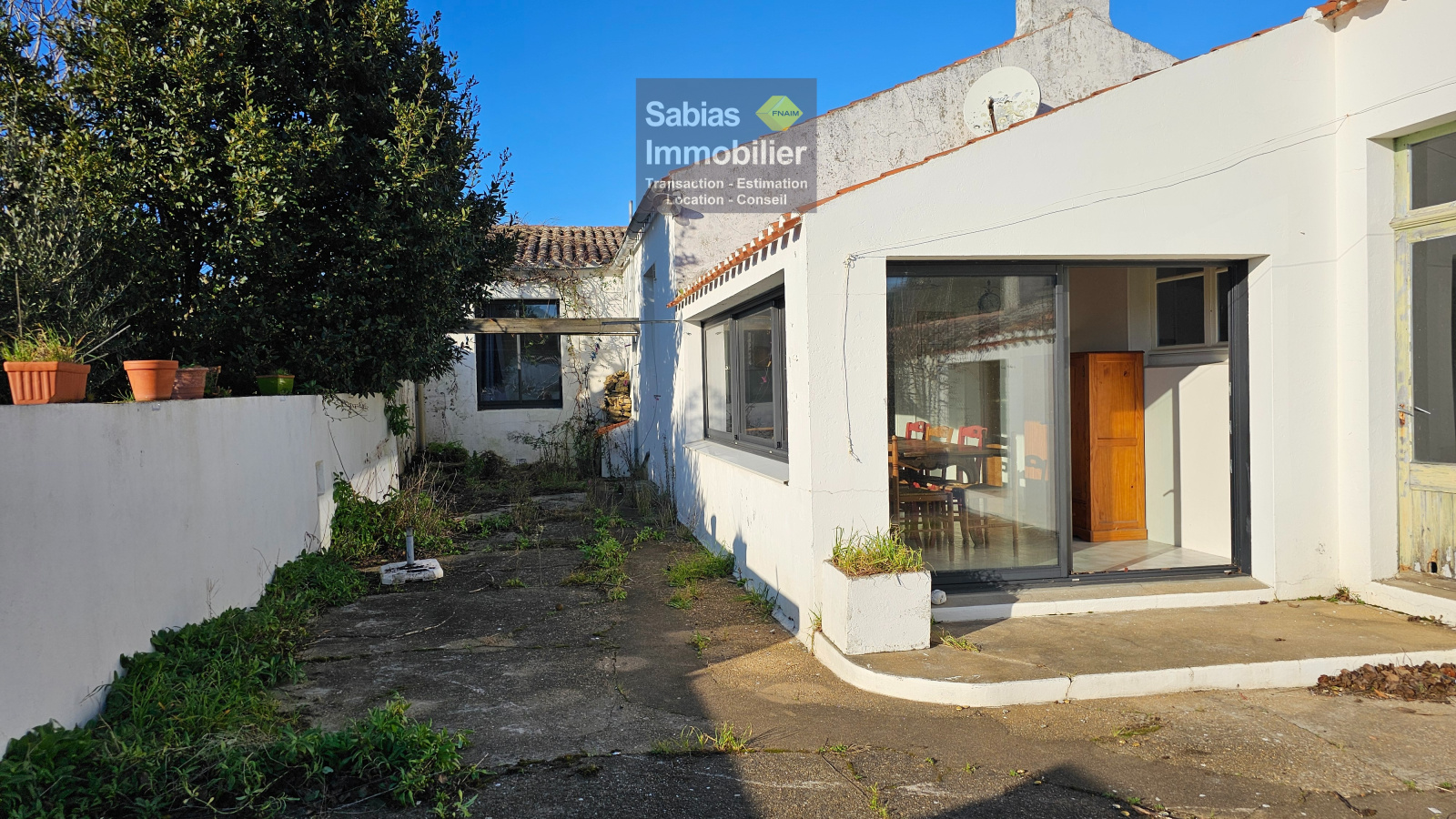 Le garage vous permettra de stocker voiture, transats et vélos. L’exposition de la cour vous offrira un ensoleillement du midi jusqu’au soir.